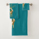 Estes belos conjuntos de toalhas de banho irão iluminar qualquer banheiro numa grande variedade de cores. Este padrão em particular é uma rena dourada em uma bela toalha azul-lacrimejante.