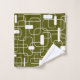 Este conjunto de toalhas tem uma design moderna do século médio de retângulos abertos e fechados em branco num campo de verde camo.