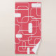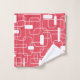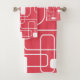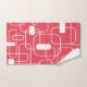 Este conjunto de toalhas tem uma design moderna do século médio de retângulos abertos e fechados em branco num campo de vermelho retrorado.