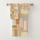 Este conjunto de toalhas tem uma design de Boho de retângulos de diferentes tamanhos e formas em Boho de cores de ouro, marrom, laranja, bronzeado, verde e cinza. Se você gosta do design, mas prefere cores diferentes, me mande mensagem.