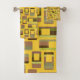 Este conjunto de toalhas tem uma design moderna do século médio de retângulos arredondados em tons de verde e marrom com buracos num campo de ouro. Se você gosta do design, mas prefere cores diferentes, me mande mensagem.
