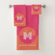 Retro Pink Orange Geometric Modern Monogram Bath Towel Set
