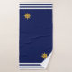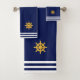 Roda do navio do ouro Elegante em azul marinho com listras do conjunto de toalhas. Toalhas náuticas modernas. A imagem pode ser personalizada.