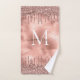 Conjunto De Toalhas Rosa Metálico Monograma Dourado Coletor Rosa
