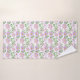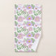Um lindo conjunto de toalhas de banho florais roxas e brancas com folhagem de eucalipto. Estes fazem ótimos presentes para chuveiros de noiva ou qualquer outra ocasião.