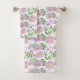 Um lindo conjunto de toalhas de banho florais roxas e brancas com folhagem de eucalipto. Estes fazem ótimos presentes para chuveiros de noiva ou qualquer outra ocasião.