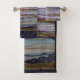 Este lindo conjunto de toalhas foi criado da imagem de uma pintura de tinta original que eu criei em 2021. Com tons roxos, marinhos e dourados, estas toalhas são românticas e atraem os olhos.