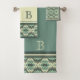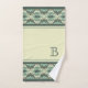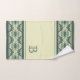 Linda faixa de oliveira contemporânea verde, bege de marfim e padrão mosaico de kilim esticado. Com espaço para personalizar ou personalizar com monograma ou iniciais de sua escolha. Ornamentado, capricho e design, disponível em uma variedade de sotaques divertidos, elegantes e elegantes de decoração de banheiro e essenciais de praia. Design decorativo disponível em sotaques e acessórios bonitos, divertidos, elegantes e elegantes de decoração de casas de banho.