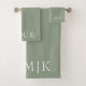 Conjunto De Toalhas Sage Verde e Branco | Monograma moderno