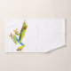 Uma fotografia de um sapo de árvore muito colorido enfeita este conjunto de toalhas!