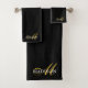 Conjunto De Toalhas Script de Monograma Dourado Preto Elegante Moderno