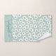 Um conjunto de toalhas de banho florais verde, branco e cinza fofo que pode ser monogramado com o nome dela ou um sobrenome ou iniciais. O conjunto inclui toalha de banho, toalha de mão e pano de limpeza. Faz um ótimo presente de chá de panela ou presente de casamento.