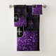 Personalize com o seu nome e nome inicial - uma toalha de casa de banho falso e cintilante para ela. Se for Sparkly e Purple, quero um padrão. Linda brilho roxo brilha texto. Garota glamourosa brilhante reluzente brilha texto brilhante em preto. Foto de faíscas roxas, não de reluz real!