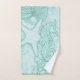 Esta bela design de efeito aquarela apresenta grandes imagens de uma concha de moluscos, estrelas-do-mar, cavalo-marinho e tartaruga em um fundo texturizado. Esta versão está em tons de aqua com uma borda opcional em estilo corda em aqua e ouro arenoso que adiciona um trim elegante à toalha de banho. A borda pode ser excluída ou copiar qualquer colagem para mudar para a mesma cor. Procure ID751 para ver opções de cores e outros produtos com este design.