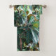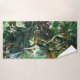 Foto de thickets verdes na floresta tropical. No primeiro plano está uma enorme árvore Croton com grandes folhas decorativas brilhantes.