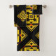 Set de serviettes de bain aux motifs inspirés par les couleurs et motifs africains, pour une décoration chaleureuse de votre salle-de-bain. Pour une déco harmonisée, explorez la Collection Afro Bath.