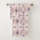 Este conjunto de toalhas de banho apresenta um padrão geométrico tribal de setas e diamantes em azul de ardósia, rosa-pincel e terracota para um olhar de boho.