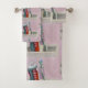 Impressão de pintura de óleo de uma escova de dentes e pasta de dentes com fundo rosa.