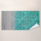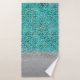 Neste conjunto de toalhas de na moda é uma tela metálica prateada na parte inferior da grande toalha onde você pode personalizá-la então um padrão de prata brilhante que se mistura com uma impressão-leopardo prateada reluzente com um pano de fundo da turquesa para pop extra. Víblias de gíria.