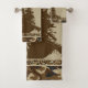 Que tal decorar o seu banheiro com este conjunto de toalhas de banho? Apresentando uma imagem central de abstrato de um soldado de cor castanha e bandas de design de camo marrom em bordas superiores e inferiores, este conjunto de toalhas faz uma ideia perfeita de presente de tendência para o biº ou o Natal.
