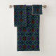 Bath Towel Set Of Three Sizes decorative bathroom amenity and home furnishing decor accessory printed with a Southwestern Symmetrical Tiled Pattern Line Art graphic design illustration by TheFabricSeal at Zazzle #ZazzleMade https://www.zazzle.com/store/thefabricseal