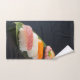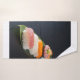 Enhance your day with this beautifully printed towel featuring elegant nigiri sushi on a green leaf background. The deep black background highlights the vividness of the sushi, making this towel both functional and artistic. Perfect for sushi lovers and fans of Japanese cuisine, it also makes a unique gift.
