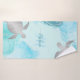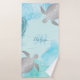 Esta toalha costeira foi montada para suas feições de tartarugas tribais prateadas em um fundo azul-marmoreado azul-turquesa. Personalize-o com seu nome e monograma.