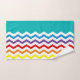 Toalhas personalizadas do banheiro da cerceta de Chevron do arco-íris teste padrão bonito na moda ajustadas. Divertimento e arco-íris brilhantemente colorido com as listras amarelas, alaranjadas, vermelhas, roxas, azuis e verdes da viga em um branco e em um fundo da cerceta. Ideias do adolescente, as adolescentes ou dos miúdos do divertimento do presente em um tema do arco-íris. Personalizado na pia batismal branca na toalha do corpo. Edite para mudar o estilo de pia batismal. www.SamAnnDesigns.com