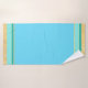 As características ajustadas desta toalha aperfeiçoam cores da piscina! Uma beira textured do design do ouro com acentos da listra do aqua e da turquesa faz para essa sensação beachy legal. Personalize o fundo azul brilhante a toda a cor que você precisar.