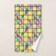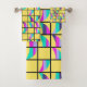 Este conjunto de toalhas tem uma design moderna do século médio de luas em crescente dividida horizontalmente em três cores, rosa, azul, lavanda ou sodo, dividida ao meio e espalhada em uma grade com fundo amarelo. Se você gosta do design, mas quer cores diferentes, me mande mensagem.