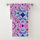 Conjunto De Toalhas Tie Dye Mandala Padrão Denim Azul e Rosa
