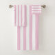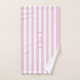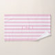 Conjunto de toalhas listradas, bonito e brancas, personalizadas por chic, com o nome escolhido, definido em um script rosa moderno com uma borda correspondente. Personalize o fazer como um presente perfeito para si mesmo ou como um presente especial para um amigo ou membro da família.