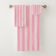 Conjunto de toalhas listradas, cor-de-rosa macio.