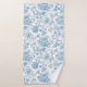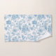 Refresh your bathroom decor with our new bath towel set design, featuring an elegant Toile-de-Jouy Chinoiseries blue floral pattern beautifully framed on a custom white background.