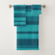Conjunto De Toalhas tons de turquesa azuis com padrão vertical riscado