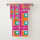 Este conjunto de toalhas tem um design geométrico feito de Ls em diferentes direções se repetindo através do design.