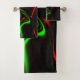 Conjunto De Toalhas Traços curvos verdes e vermelhos sobre fundo verde
