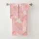 Este conjunto de toalhas de banho apresenta um padrão moderno de pincéis de abstrato em pêssego, rosa e coral.