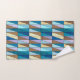 Toalha montada numa grelha geométrica moderna do século Médio de triângulos em cores de vidro marinho de azul-cerulano, turquesa, aqua, marrom-café, bege e violeta suave