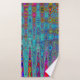 Este Conjunto de Toalhas de Banho Coloridas Legal apresenta um Design de Ondas Atômicas Retro Azul Trippy Sky com Acentos Magenta, Amarelo, Aqua, Púrpura, Turquesa e Vermelho. O resultado é um design abstrato colorido, trivial, ranhoso, ondulado e marmoreado que você vai amar!