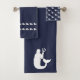 Merman com tubarões-tigre Banheiro Azul e toalha branca definida design por Sandy Closs