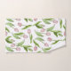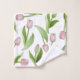 O design do produto apresenta um padrão de flores tulipas cor-de-rosa. Esta ilustração botânica faz um chic moderno e um conjunto único de toalhas de banho.