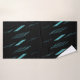 Este design apresenta uma combinação de padrões geométricos de barramento frontal num esquema de cor azul-turquesa numa canvas preta profunda, criando um contraste notavelmente colorido de padrões de faixa angular e um padrão atraente de toalha de banho.