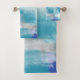 Conjunto De Toalhas Turquesa Moderna e Cinza Aquarela Abstrato