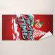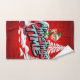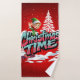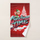 Um elfo animado de desenho animado com roupas verdes e orelhas pontiagudas ondas de uma paisagem nevada. As palavras "Horário de Natal" são escritas em letras grandes, coloridas, em estilo de grafite, com um esquema de cor rosa e azul. O fundo é vermelho vivo, sugerindo uma atmosfera festiva de férias. Os flocos de neve caem suavemente, adicionando ao toque de inverno.