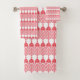 Conjunto De Toalhas Um padrão geométrico vermelho e rosa com interlo