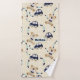 Um lindo padrão de bebês com ursos peludos e carros azuis ligados a miçangas azuis, azuis escuras e brancas. Um fundo bege com pontos brancos. Personalize alterando o nome.