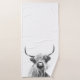 Toalha de banho preto e branco da vaca das montanhas. Retrato do animal de fazenda. Uma escala do design moderno da fotografia, efeito da aguarela, para amantes dos animais. Excelente para o senhor mesmo ou como um presente! Personalize-o adicionando seu próprio nome ou o outro texto a ele. Veja minha loja para mais artigos com esta imagem.