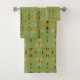 Toalha de designer em verde-oliva e verde-escuro. O plano de fundo pode ser alterado para qualquer cor.