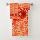 Conjunto De Toalhas Vermelho Com Pêssego Floral